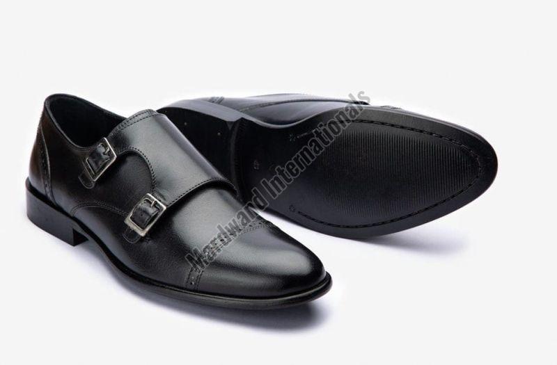 Mens Black Double Monk Strap Leather Shoes